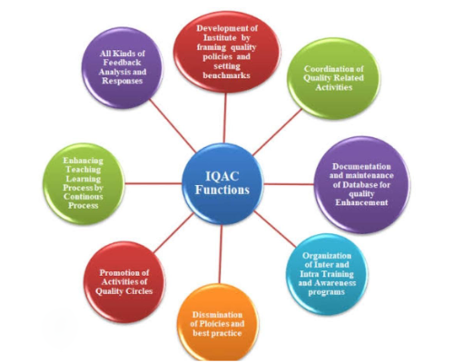 The IQAC (Internal Quality Assurance Cell) ensures continuous quality upgradation of the college, focusing on enhancing academic standards and institutional performance. It monitors and evaluates factors for the NAAC (National Assessment and Accreditation Council) ranking, ensuring compliance with criteria like teaching-learning processes, research and innovation, library facilities, infrastructure, and student support services. The IQAC promotes faculty development, student feedback mechanisms, and best practices to ensure the college meets national and international standards. Additionally, the cell implements innovative teaching methodologies, academic audits, and quality improvement strategies for holistic development and a conducive environment.